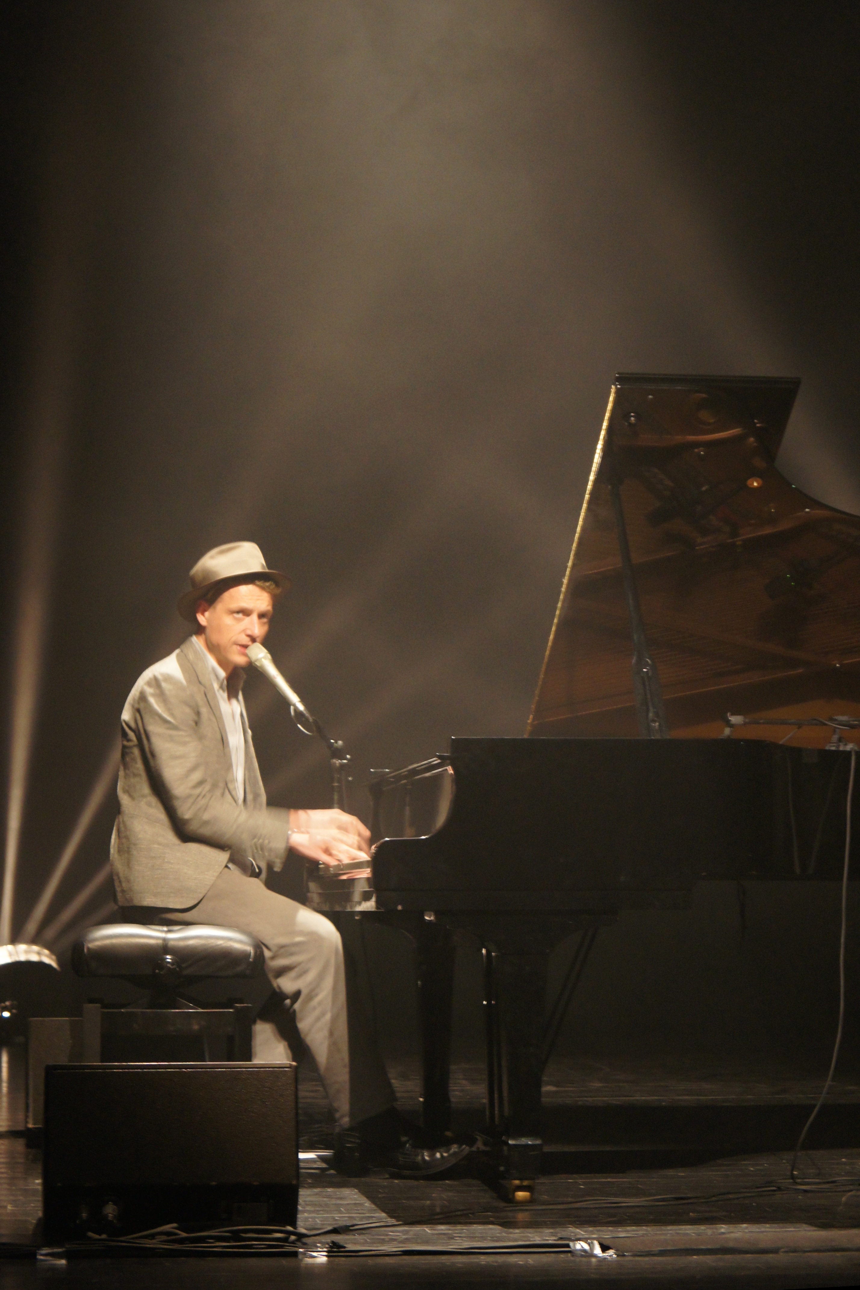 Assis à son piano, ses jambes gigotent.
